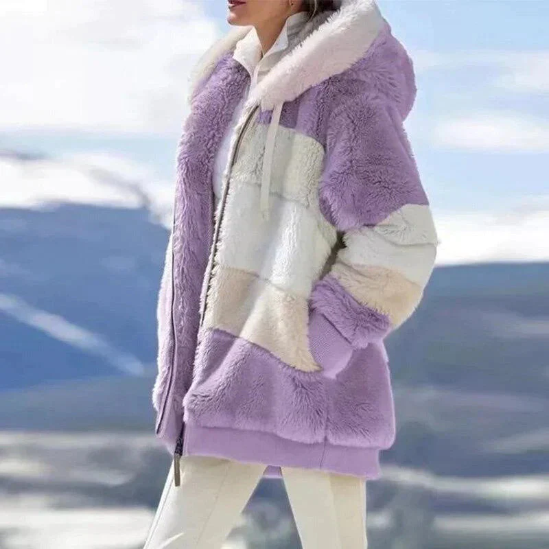 Alice – 2024 Acogedora chaqueta de tweed con capucha y forro de lana afelpada