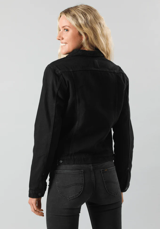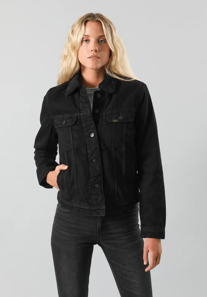Clásica chaqueta de mezclilla, tela con elasticidad para mejor calce y mayor comodidad, con chiporro en su interior, un infaltable en el clóset. Calentita y estilosa. La modelo mide 178 cm. y está usando la talla S.