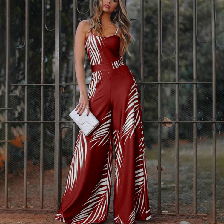 Elodie – Mono de pierna ancha con tirantes y estampado de hojas para mujer