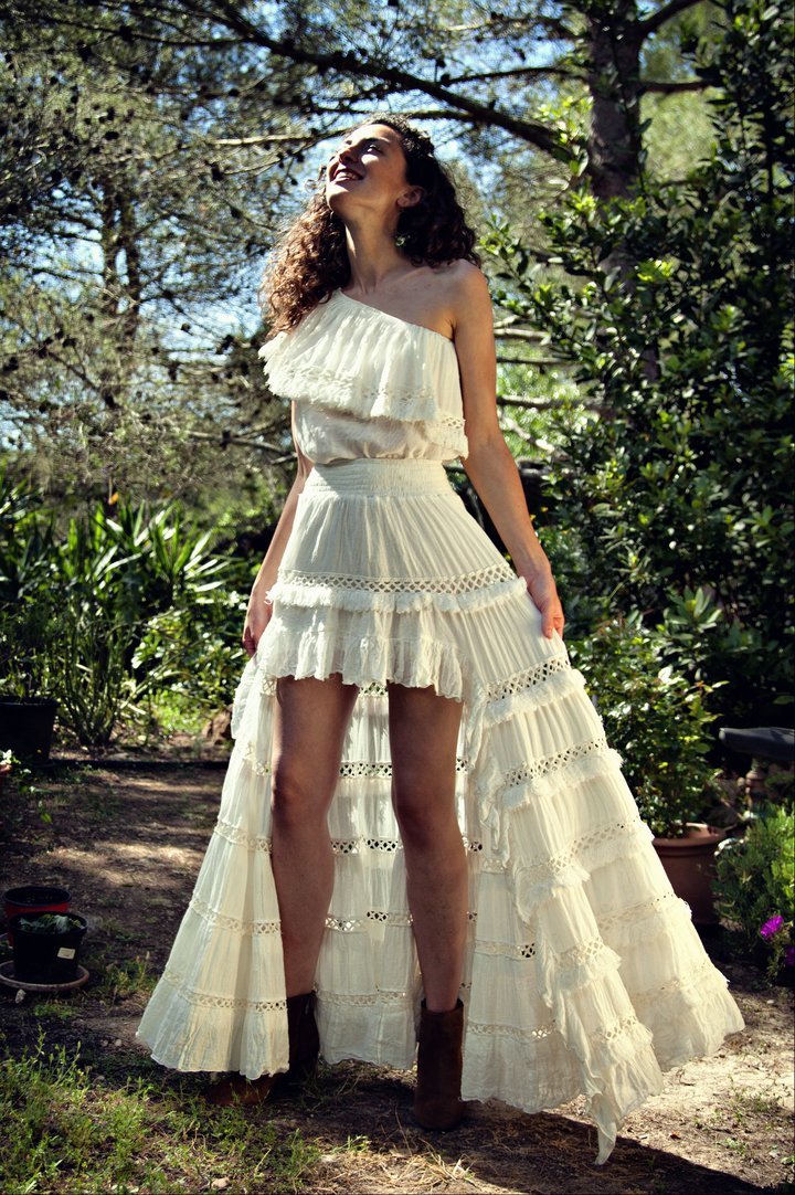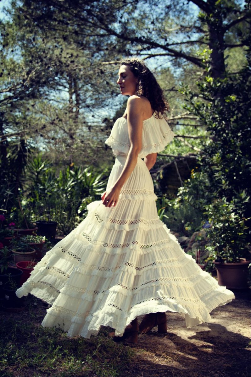 Falda de algodón con puntillas de algodón y flecos.