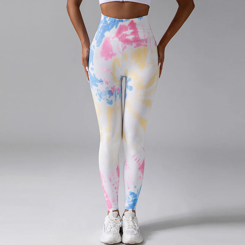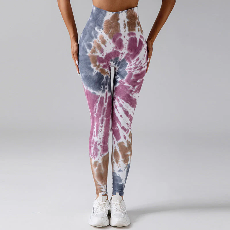 Heidi-Mode – Cómodos leggings transpirables Tie Dye Scrunch para mujer