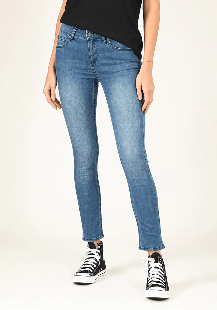 Nuestros modernos jeans Elly de ajuste Slim, presentan un tiro ligeramente más alto. Con su pierna Slim desde la parte superior hasta abajo, proporciona la silueta slim definitiva. Elegante, angosto pero no Skinny, perfecto para combinar con todo. La modelo mide 1,80 m. y está usando la talla US 28 – CH 38.