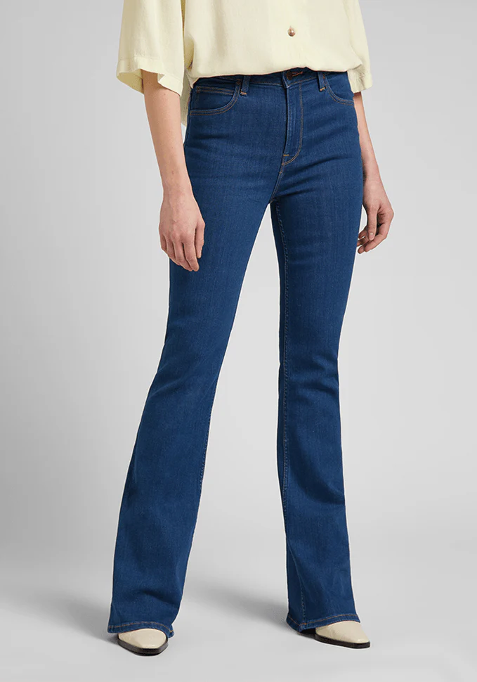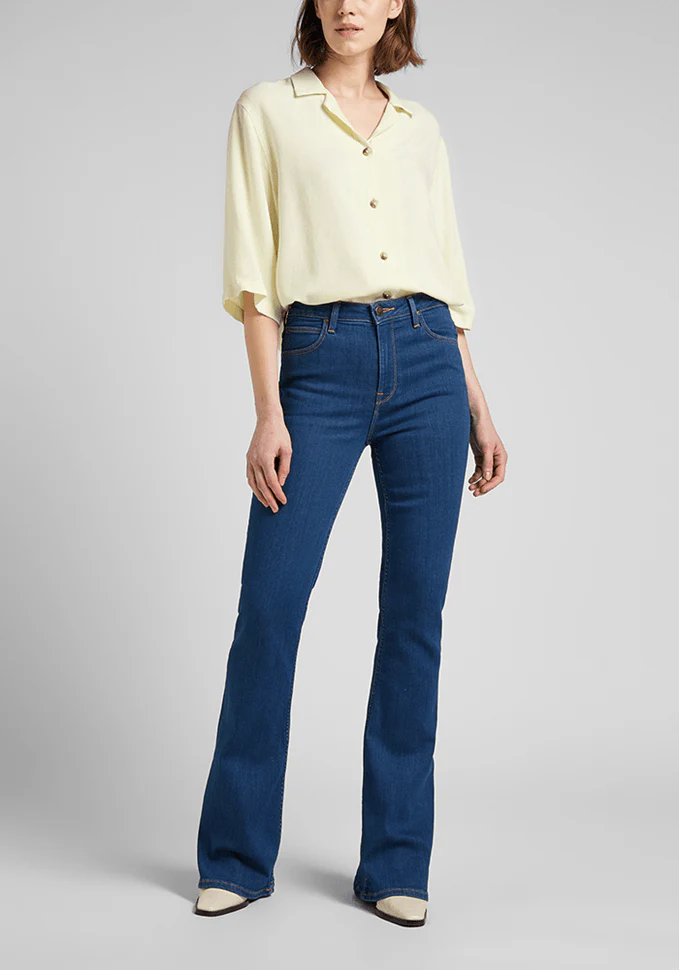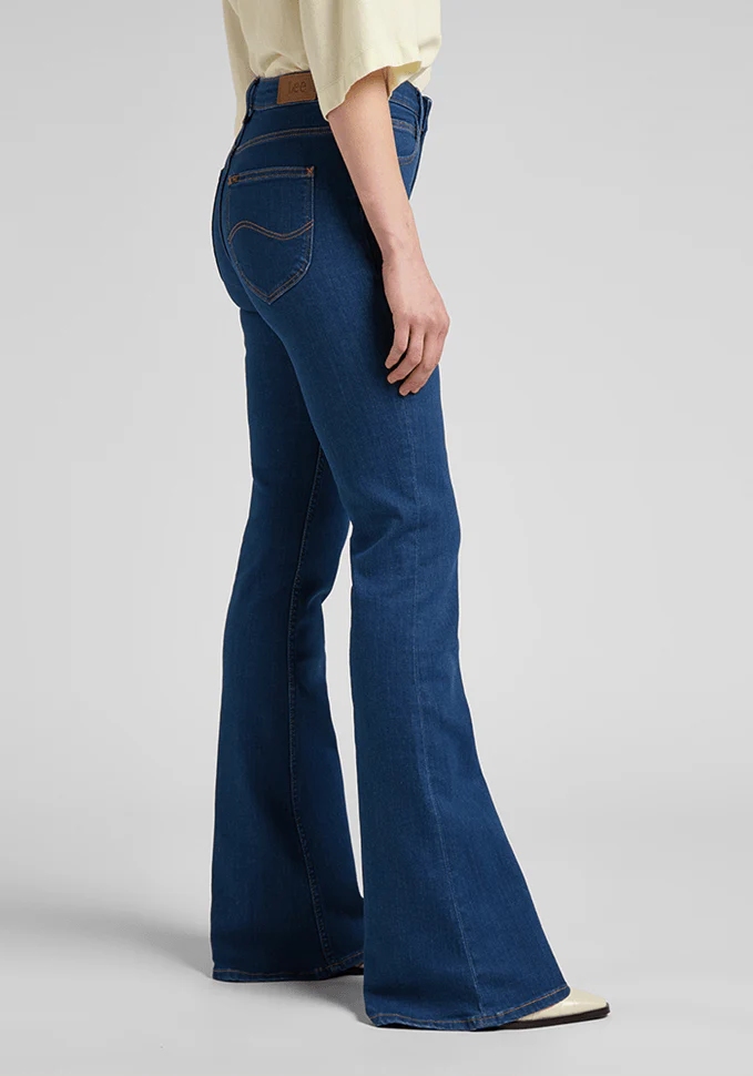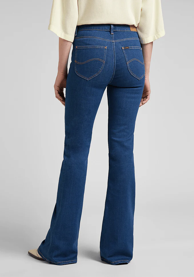Tan retro y ahora súper moderno también, el pantalón acampanado es imprescindible para cualquier experto en jeans. Se reelabora magistralmente aquí en nuestro ajuste Breese, donde la mitad superior ajustada da forma a la parte trasera y se adhiere cerca de la rodilla para darle esa silueta clásica. Ten en cuenta que la cintura de tiro más alto y los bolsillos más pequeños colocados en la parte trasera ayudan a mejorar tu forma. Este modelo se ha confeccionado con auténtico tejido denim que pesa un poco sin llegar a ser muy denso. Se ha añadido un nivel medio de elasticidad para que la prenda resulte cómoda de llevar sin renunciar al corte de pierna recta. El teñido se consigue mediante nuestro proceso Crystal Clear sin agua, de modo que podrás confiar en las credenciales de respeto al medioambiente de estos jeans. Cuentan con botón de metal antiguo y el parche trasero biodegradable.