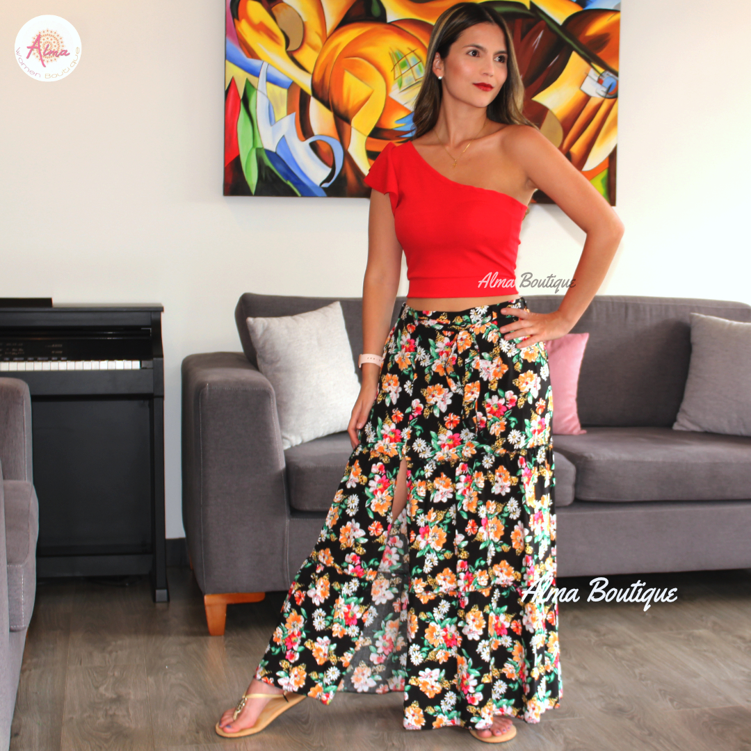 Falda larga flores Rojas
